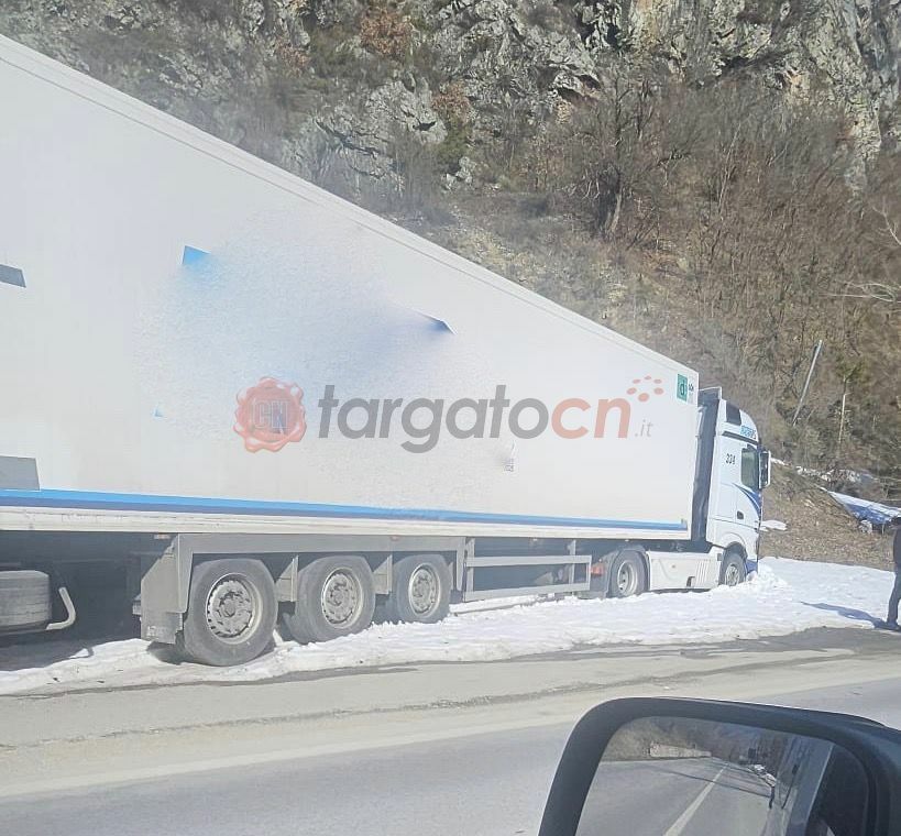 Qui un mezzo pesante, partito dallo stabilimento della Sant'Anna e diretto a valle, per cause ignote è finito prima nella corsia opposta e poi fuori strada, restando piantato in un cumulo di neve.