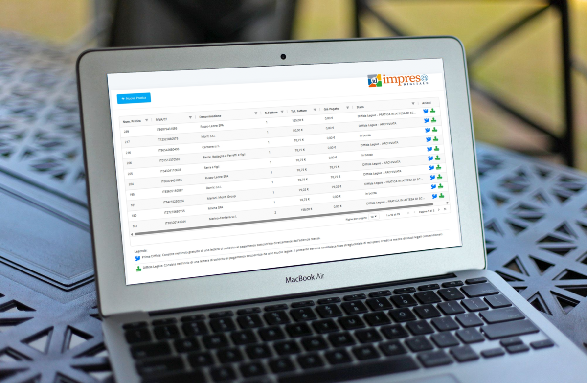 Si parte dalla Prima Diffida (gratuita) che consiste nell’invio di una PEC di sollecito al pagamento, sottoscritta direttamente dalla tua azienda. È il primo passo ideale per intervenire in modo formale, rapido e senza costi, mantenendo una comunicazione professionale con il cliente. Se il sollecito non è sufficiente, puoi passare alla Diffida Legale: l’invio di una lettera di sollecito al pagamento sottoscritta da uno studio legale partner di ImpresaDigitale.eu. Questo servizio rappresenta la fase stragiudiziale del recupero crediti, svolta tramite studi legali convenzionati, per dare maggiore autorevolezza alla richiesta e aumentare le probabilità di incasso.