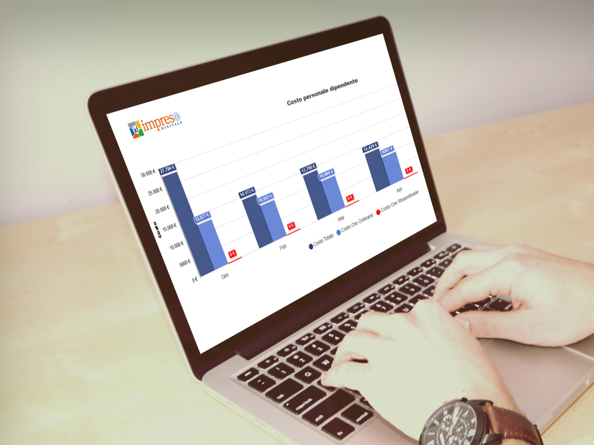 Da questa sezione si accede alla relativa sezione di Analytics. Con grafici e tabelle si tiene sotto controllo costo del lavoro, ferie, straordinari, ore lavorate, fino al dettaglio del costo per singolo dipendente.