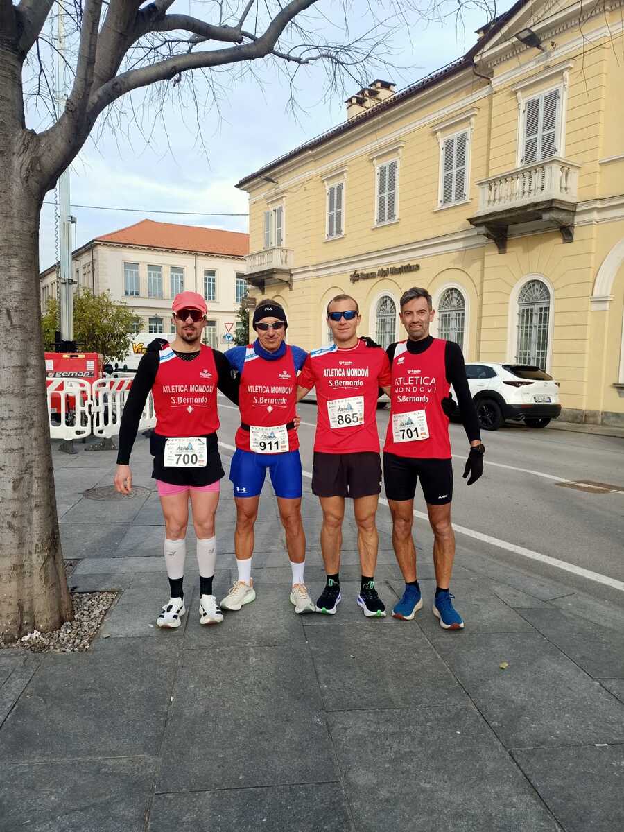 Domenica 22 febbraio si è svolta 11ª edizione della “Mezza del Marchesato”: partenza e arrivo dal centralissimo Corso Italia di Saluzzo dopo 21 chilometri di tracciato nella campagna del Marchesato toccando nell’ordine i Comuni di Manta, Verzuolo e Lagnasco. Organizzazione congiunta dell’Atletica Saluzzo e della Podistica Valle Varaita con al via record di iscritti 1.150 partenti. La vittoria è andata agli atleti di casa Gianluca Ferrato e Noemi Bogiatto (Saluzzo) rispettivamente con 1h07’39” e 1h16’51”. L’Atletica Mondovì – Acqua S. Bernardo ha preso parte a questa manifestazione con una numerosa pattuglia di atleti capeggiato da Luca Mondino, 26° e 3° SM35 in 1h17’58”, quindi 48° e 7° SM35 Stefano Rosso in 1h20’37”, 69° Francesco Peyrone (11° SM35) in 1h22’58”, 71° Luca Cardone (7° SM35) in 1h23’10”, 244° Carlo Cavanna 1h32'49, 273° Christian Mamino 1h33'48, 374° Borislav Milojevic in 1h37’20, 419° Pietro Grosso in 1h38’42”, 420° Andrea Borello in 1h38’42”, 429° Manuel Boaglio 57° SM45 in 1h39’03”, 699° Michele Pianetta in 1h50’18” e 102ª nelle donne e 24ª SF35 Federica Rizzo in 1h50’40”.