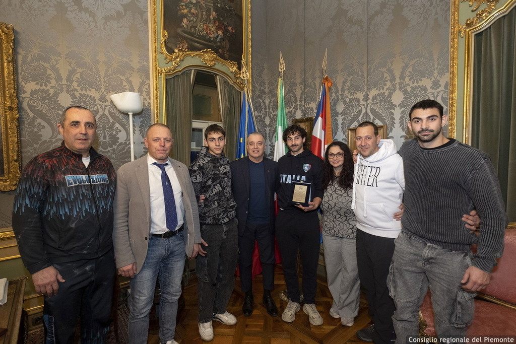 Il vicepresidente del Consiglio regionale Franco Graglia ha ricevuto a Palazzo Lascaris mercoledì 25 febbraio, Francesco Fina, neocampione del mondo di Kick Jitsu di Boves.