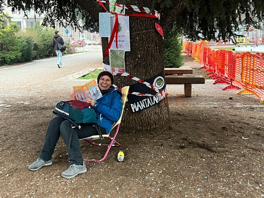"Per me è naturale essere qui. Pensare che possano abbattere questi alberi, così sani e forti, è qualcosa che non riesco a comprendere. In molti comuni si pianta un albero per ogni nuovo nato. Qui invece rischiamo di perdere alberi che intere generazioni hanno visto crescere. Io e mio marito, nei nostri viaggi, abbiamo piantato alberi in molte parti del mondo. Ora vivo qui e continuo la mia battaglia per l’ambiente, insieme a tante altre persone".