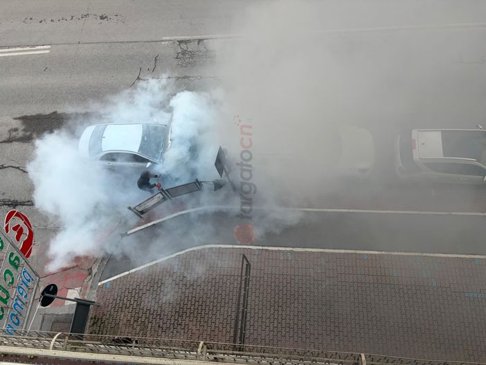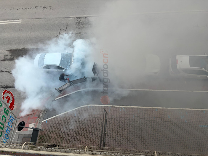 Una densa colonna di fumo si è sprigionata da un'autovettura che è stata poi interessata da un principio di incendio.