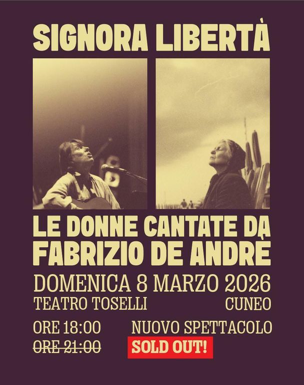 Sono bastati pochi giorni perché i biglietti dello spettacolo dei Lou Tapage “Signora Libertà – Le donne cantate da Fabrizio De André” andassero esauriti.