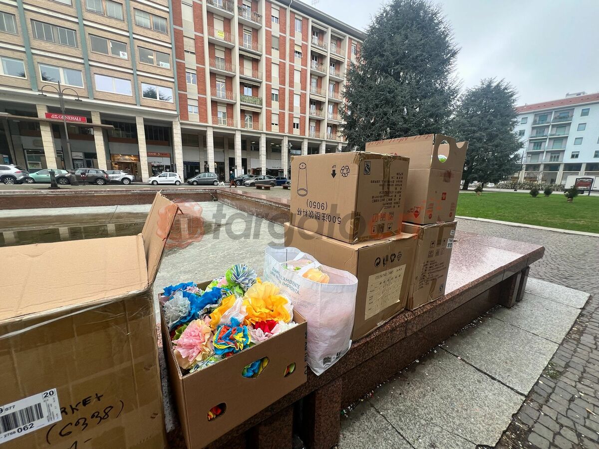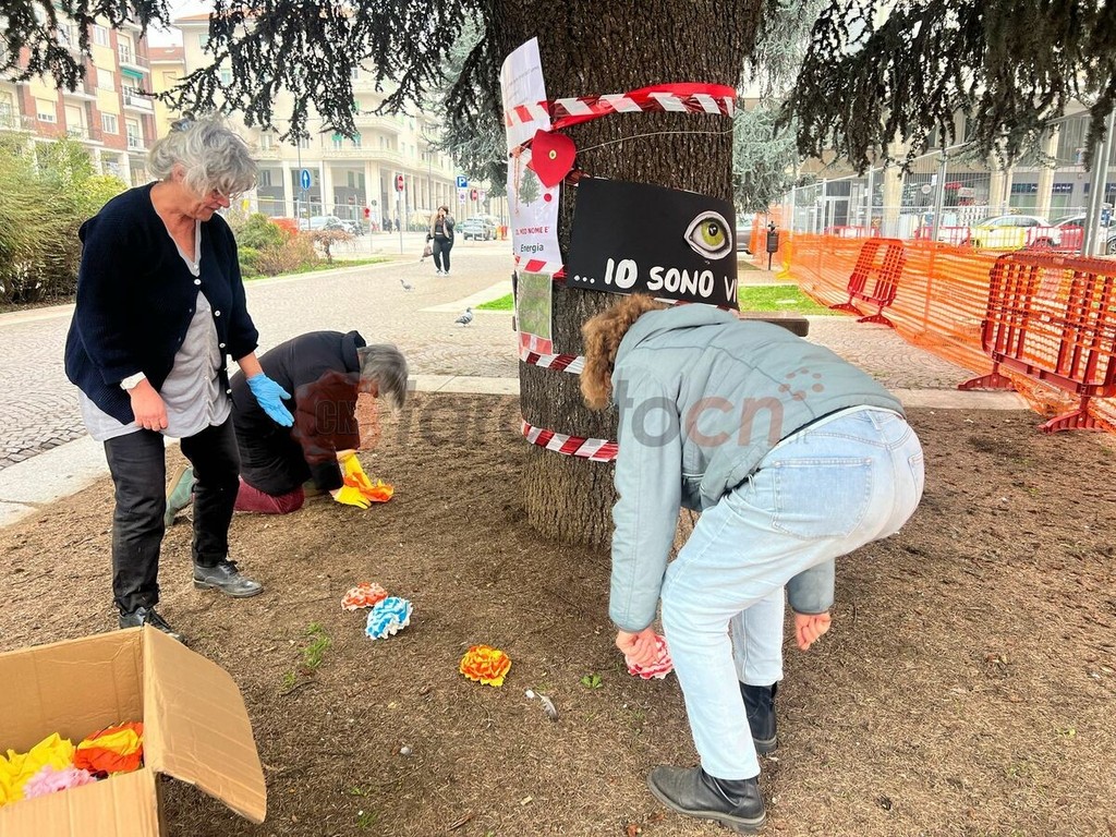 Hanno iniziato stamattina ad abbellire piazza Europa, a Cuneo, spazzando a terra, lavando le panche e piantando dei fiori di carta sotto i cedri.