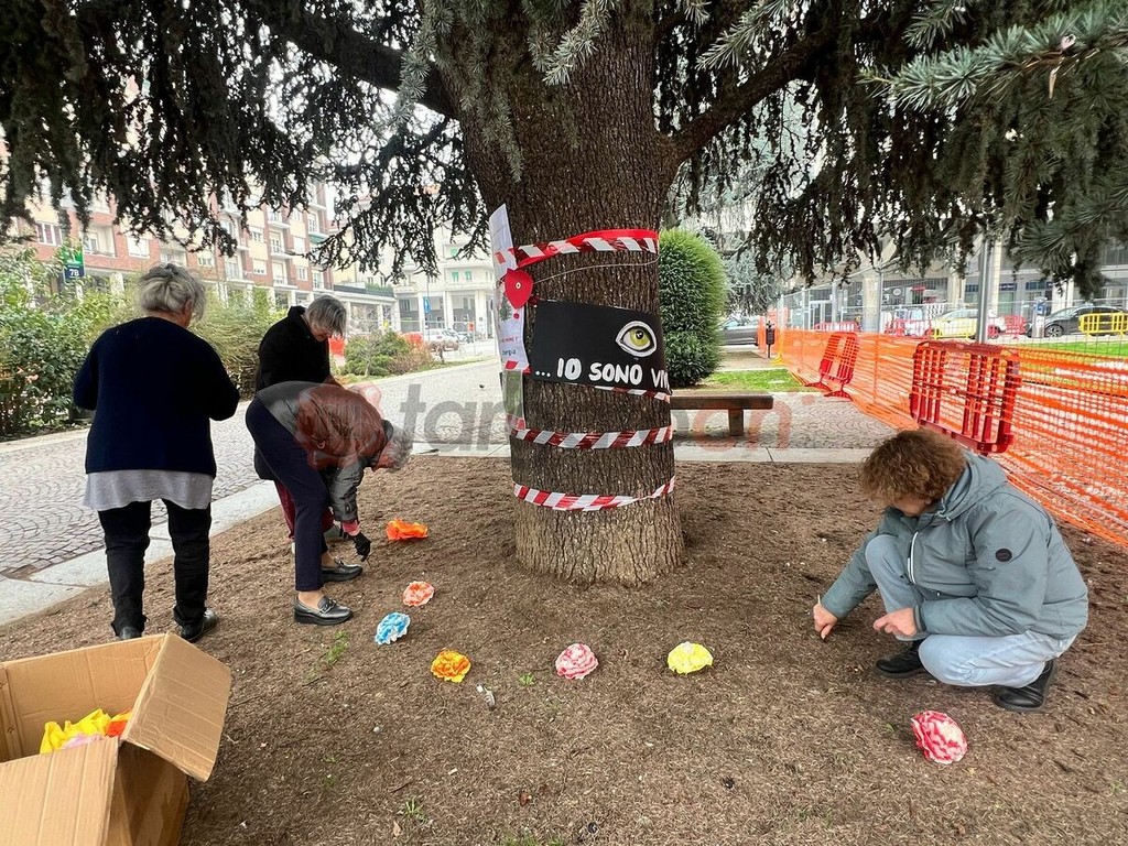 Un allestimento che continuerà anche nel pomeriggio, grazie all'impegno e alla buona volontà di altre signore pensionate che, da tempo, sono in prima linea per i cedri di piazza Europa.