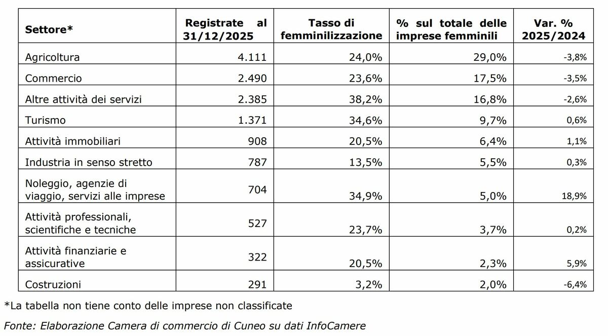 I settori di attività economica delle imprese femminili registrate in provincia di Cuneo - Anno 2025