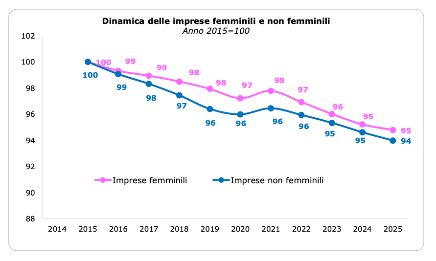 Sebbene il numero complessivo sia in calo, la componente femminile continua a mostrare una resilienza maggiore rispetto al resto del sistema imprenditoriale, avendo affrontato le sfide dell'ultimo decennio con perdite meno marcate.