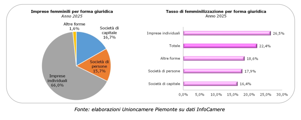 Mediamente più piccole, con una maggior partecipazione di straniere e under 35 e, rispetto al passato, più strutturate e orientate verso i settori a maggior contenuto di conoscenza: le 93.489 imprese femminili registrate in Piemonte a fine 2025 rappresentano il 22,4% dell’intero tessuto produttivo regionale, a testimonianza della grande rilevanza esercitata da questa componente nel panorama locale.