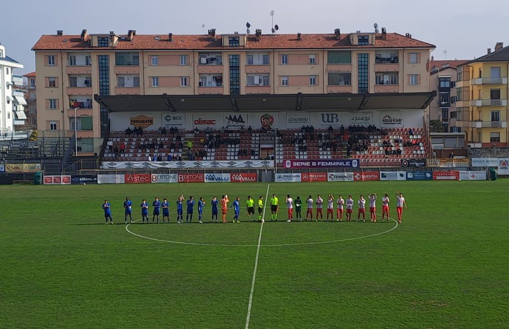 Fischio d’inizio alle ore 14:36 allo stadio “Fratelli Paschiero”. Padroni di casa in maglia bianca e pantaloncini rossi mentre gli ospiti con la tradizionale divisa blu.