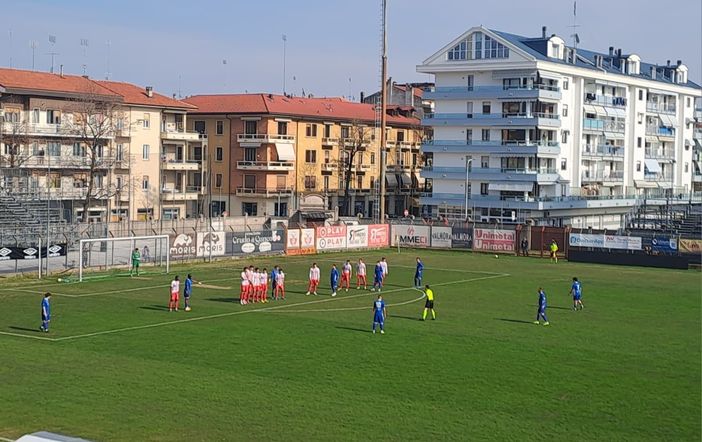 Decide la sfida dello stadio “Fratelli Paschiero” le rete blues di capitan Marchetti al 79’.