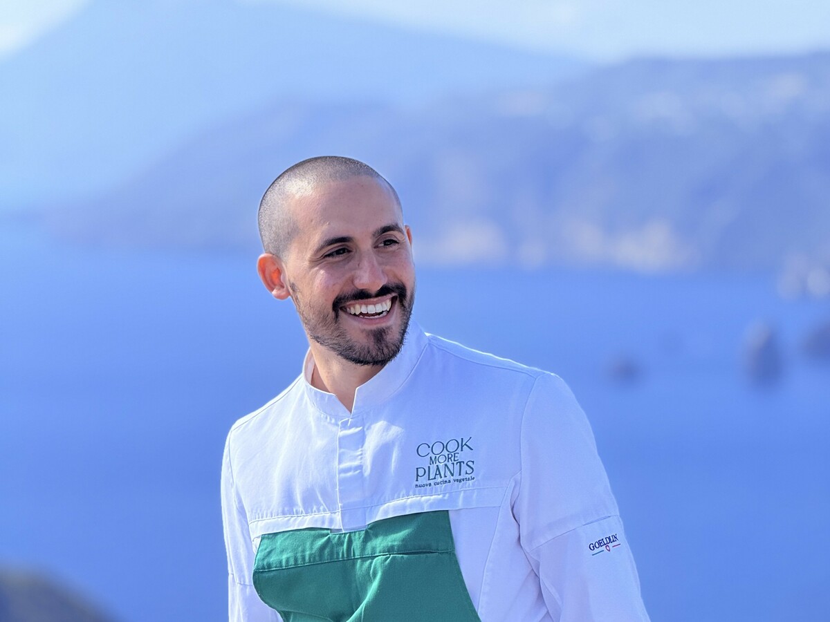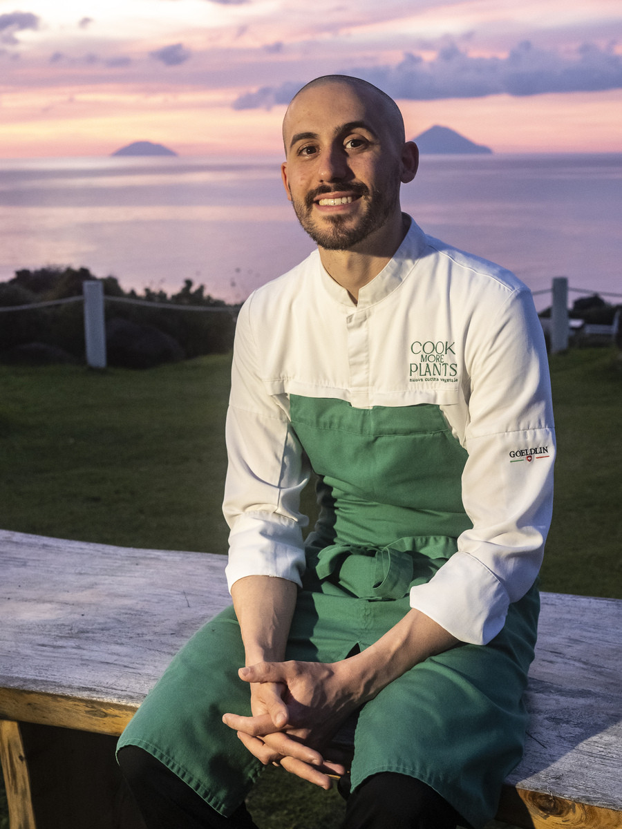 Il cuoco classe 1994 ha iniziato presto ai fornelli, bruciando rapidamente tutte le possibili tappe: a 14 anni l’ingresso in cucina, a 22 il primo ruolo da chef, e poi diverse esperienze stellate in Italia e all’estero, che hanno contribuito a fortificare la sua filosofia. Nel 2021 è approdato sull’Isola di Vulcano, al ristorante del Therasia Resort e, un anno dopo, ha pubblicato il suo Manifesto di nuova cucina vegetale, in cui ha esplicato i sette motivi per cui ha scelto (e consiglia) di puntare esclusivamente sul vegetale. Il principale? “La cucina vegetale può far esprimere ai prodotti tutte le sfumature dello spettro gustativo” e, di conseguenza, non ha nulla da invidiare a quella animale.
