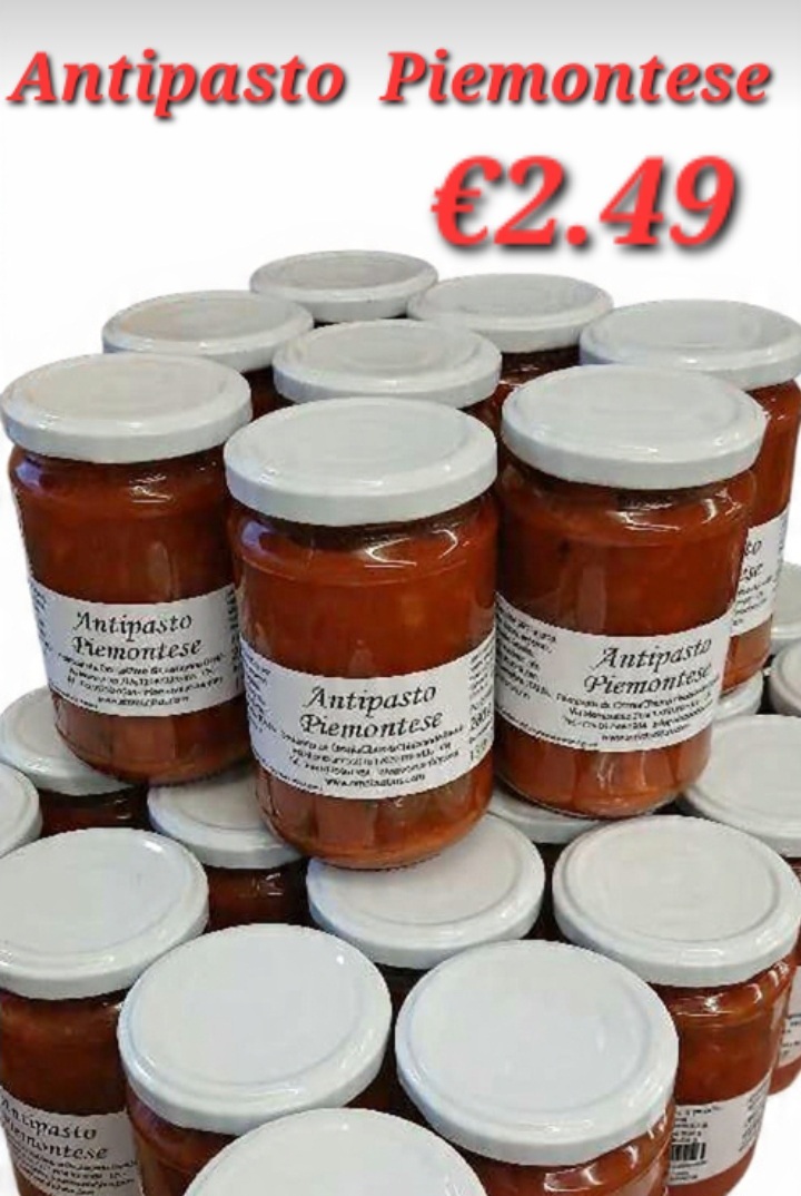 - Antipasto Piemontese 280 g → €2.49 Il gusto della tradizione piemontese che ha fatto innamorare i nostri clienti è di nuovo disponibile!