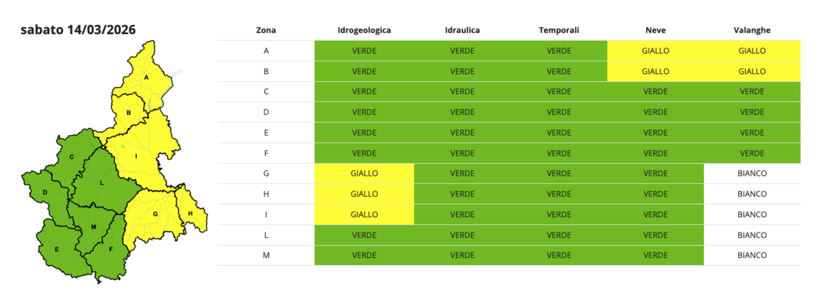 Il Piemonte nord orientale domani sarà in allerta gialla. Per quanto riguarda la provincia Granda, lo saranno le Valli Belbo e Bormida. A comunicarlo è Arpa Piemonte, nel consueto bollettino di allerta meteoidrologica e idraulica.