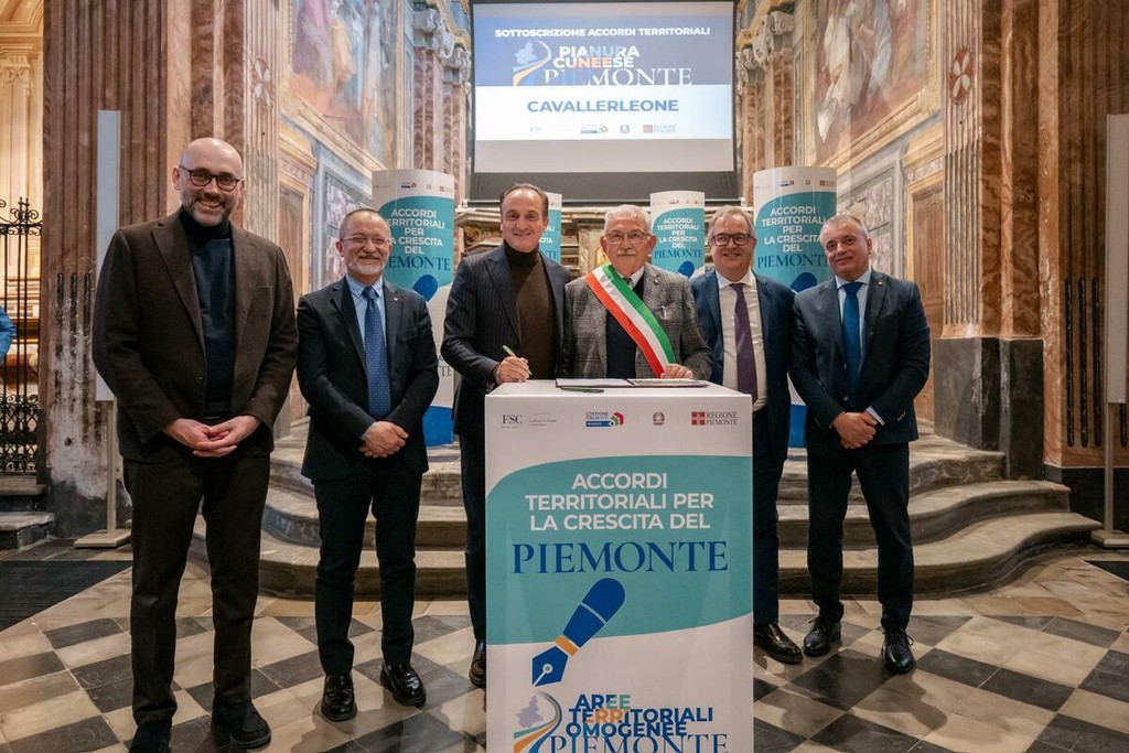 Presenti alla sottoscrizione, che si è tenuta nella chiesa di san Gregorio a Cherasco, Comune capofila per le aree Roero, Pianura cuneese, Terre del Monviso, oltre al sindaco di Cavallerleone Marcellino Peretti, il presidente della Regione Alberto Cirio, il vice presidente del Consiglio Regionale Franco Graglia, gli assessori regionali Gian Luca Vignale e Marco Gallo, con il presidente della Provincia di Cuneo Luca Robaldo.