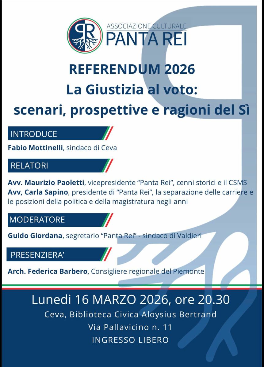 In vista di questo appuntamento, l’associazione culturale Panta Rei ha promosso nelle scorse settimane un ampio ciclo di incontri pubblici in diversi comuni della provincia di Cuneo, con l’obiettivo di spiegare in modo semplice i contenuti della riforma e le ragioni del Sì. Un percorso che ha puntato soprattutto sulla chiarezza e sul confronto diretto con i cittadini.