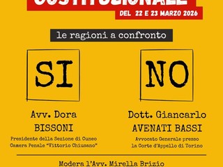 Le ragioni del Si e del No a confronto mercoledì 18 marzo alle 20,30 a Fossano nella sala Barbero del Castello. A sostenere le ragioni del Si l’avvocato Dora Bissoni, presidente della sezione di Cuneo della Camera Penale “Vittorio Chiusano.