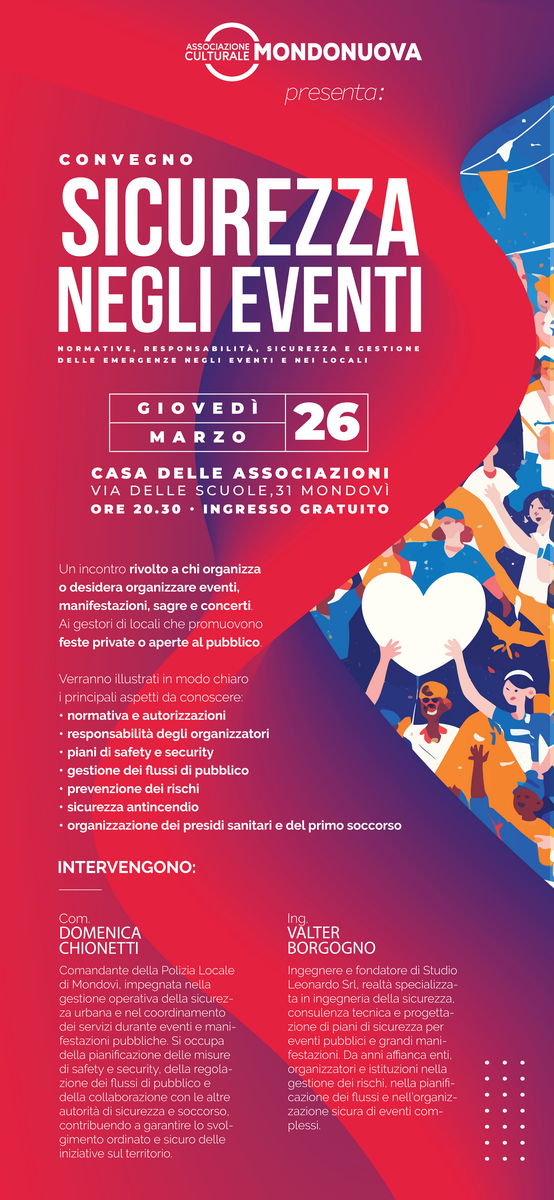 “Sicurezza negli eventi”, in programma giovedì 26 marzo alle ore 20.30 presso la Casa delle Associazioni di Mondovì (Via delle Scuole 31).