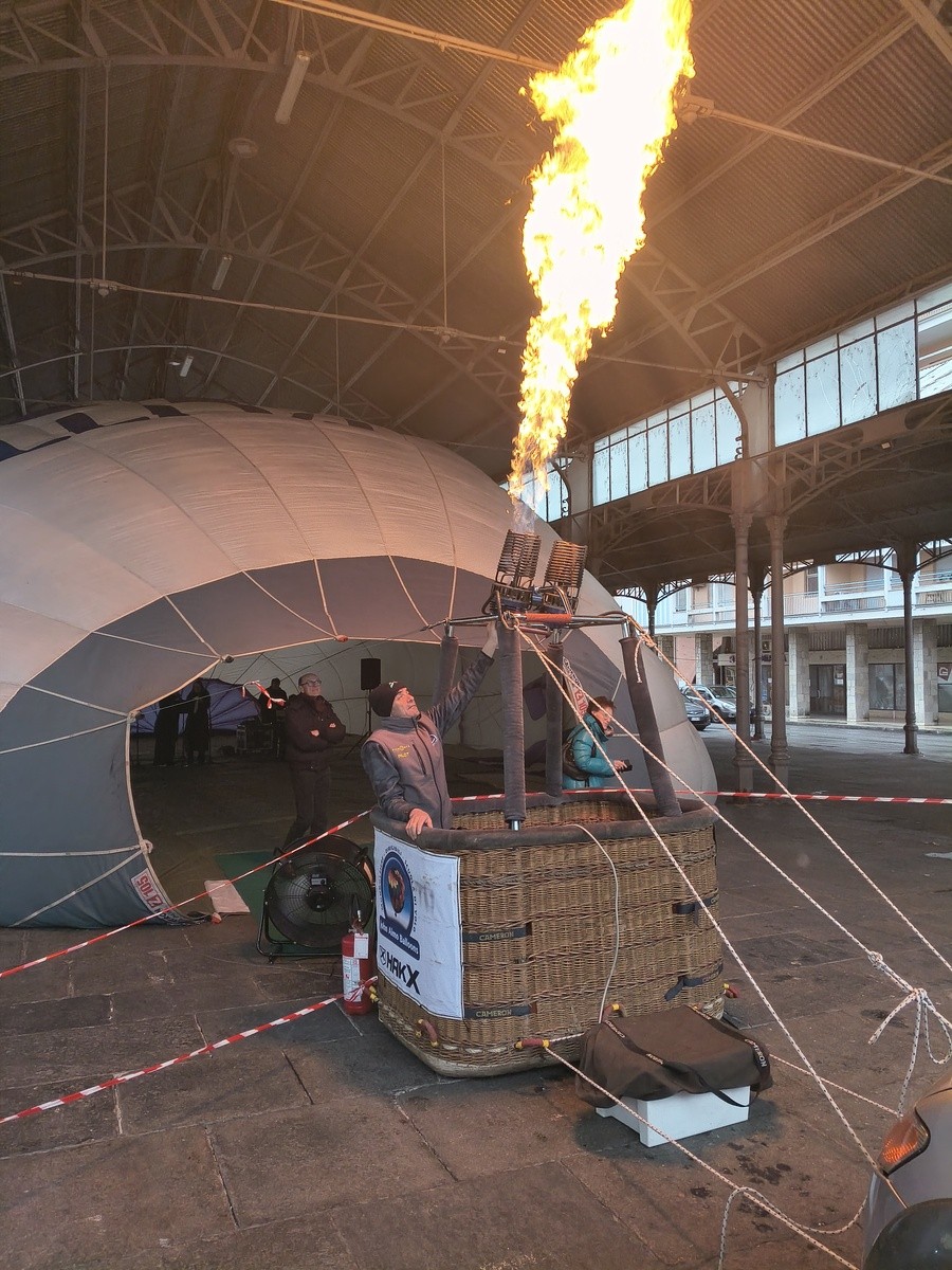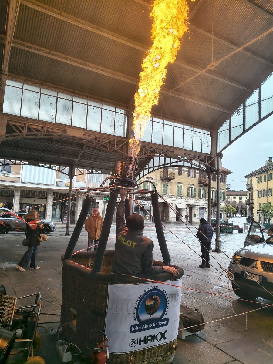 Se la giornata è stata all'insegna dell'apprendimento, la serata si è trasformata in pura poesia visiva e sonora. Sotto le storiche arcate del mercato coperto di Saluzzo, il pubblico ha potuto assistere a uno spettacolo nello spettacolo. Grazie all'esperienza e alla maestria del personale della storica John Aimo Balloons, una maestosa mongolfiera è stata parzialmente gonfiata e sdraiata a terra, creando un vero e proprio "Balloon Theater": una scenografia avvolgente e onirica, unica nel suo genere.