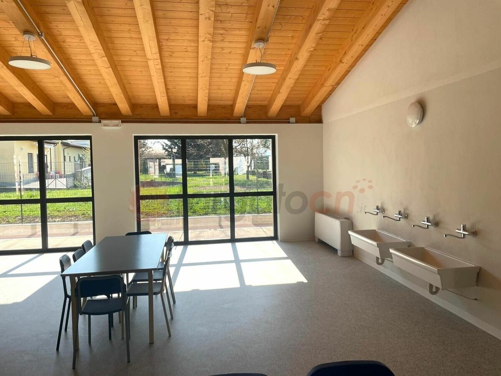 La struttura può accogliere fino a settantadue alunni ed è costituita da locale refezione, locale dispensa con accesso diretto dall’esterno, spogliatoio, deposito/lavaggio di stoviglie, servizio igienico con disimpegno e dotato di pompa di calore per la produzione di calore e acqua calda sanitaria e di impianto fotovoltaico posizionato sulla copertura.