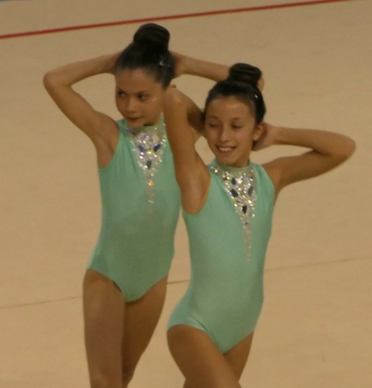 Nel programma Plus emerge applauditissima con un elegante esecuzione al corpo libero la coppia Viola Forlani e Martina Piria che ottiene l’eccellente punteggio di 10.950 salendo sul gradino più alto del podio. Viola esordirà poi anche nella Palla individuale piazzandosi ottava.  Buona prova anche l l’altro duo di Alina Lingua e Vittoria Luce Barale che conquistano il bronzo con un debutto molto scoppiettante al ritmo di Charleston. Altro esordio al Cerchio per il tandem Maria Bertola e Lavinia Lovera che salgono sul podio al 3^ posto nella categoria Allieve. Nella Open Greta Ferracane a Camilla Ricci calcano la pedana in coppia con il Cerchio e ottengono il bronzo della specialità. Nelle squadre Plus prima esperienza in campo gara per il simpatico trio composto da Emma Baroncini, Iris Salerno e Alice Saracco che con il Corpo Libero ottengono la loro prima medaglia d’argento di specialità nella categoria Allieve. Sempre nelle squadre, categoria Senior, la squadra composta da Lucia Casi, Ambra Grazzi, Asia Pisica e Sarah Vetrano si distingue con una coreografia al Cerchio molto complessa ed armoniosa e si aggiudica l’oro.