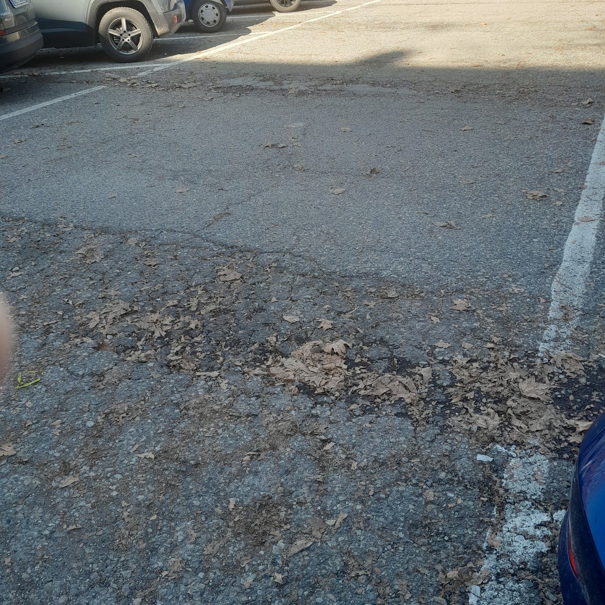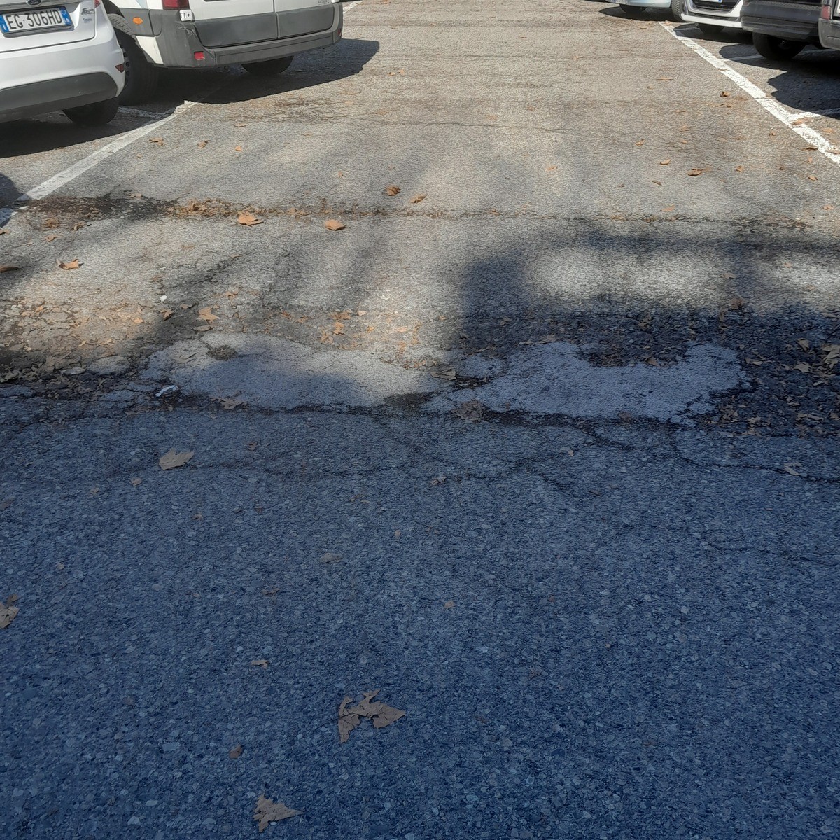 Ci sono delle buche e la segnaletica dei parcheggi a terra è ormai invisibile.