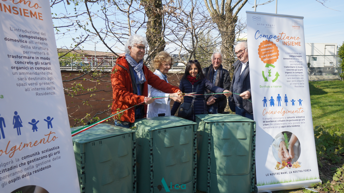 La Residenza per anziani Ottolenghi di Alba ha inaugurato oggi cinque nuove compostiere, dando il via ufficiale al progetto "CompoStiamo Insieme" realizzato con il contributo della Fondazione CRC.