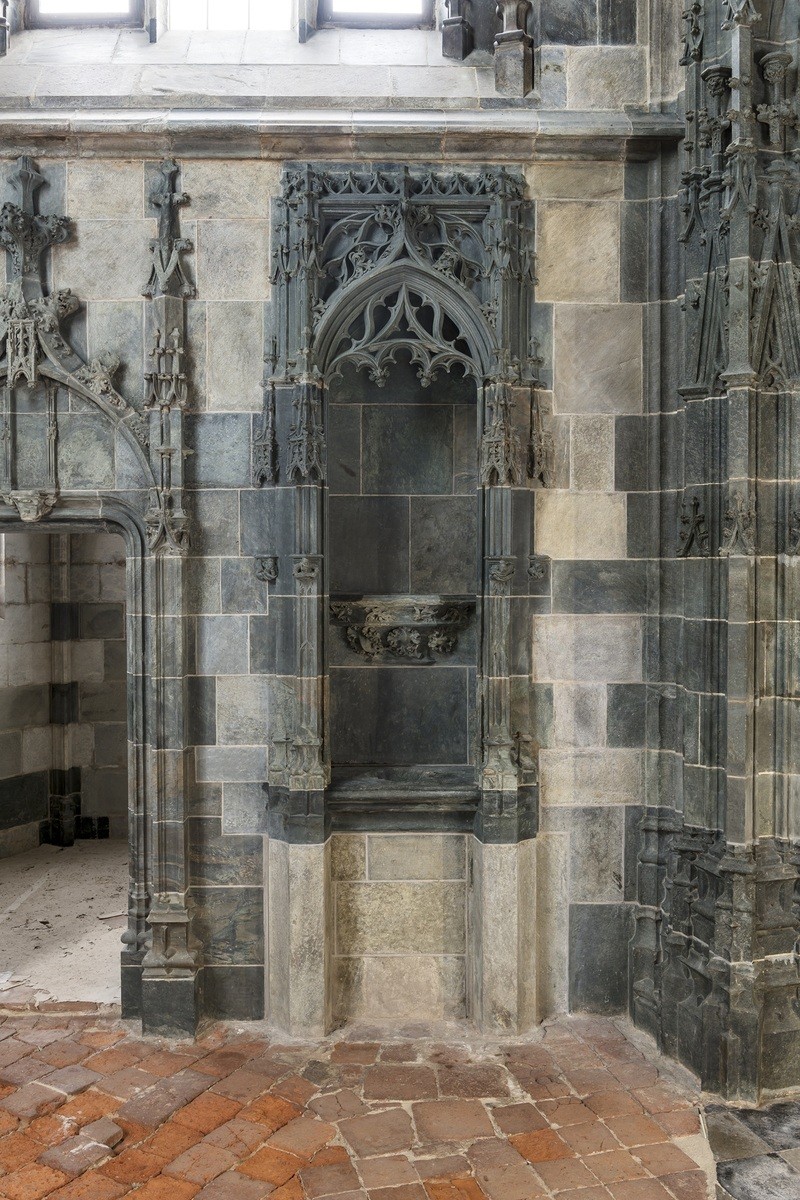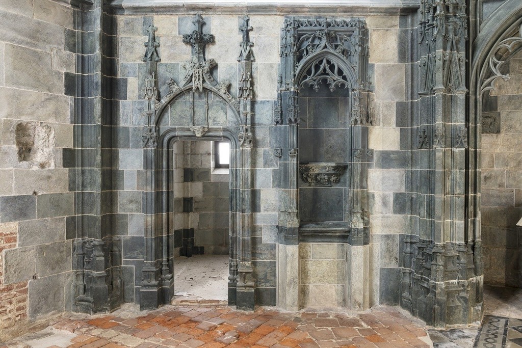 All'interno sono state interessate dai lavori di restauro, alcune campate della navata centrale, la base della cella campanaria, porzioni delle campate laterali (con particolare riferimento alle Cappelle del Rosario e dell’Addolorata) e sono stati completati - ad integrazione del cantiere ministeriale del 2022 gestito dall’arch. Silvia Gazzola e dalla dott.ssa Valeria Moratti - gli interventi sui paramenti lapidei della celeberrima Cappella marchionale, nei quali si fondono indissolubilmente le valenze strutturali e di ornato.