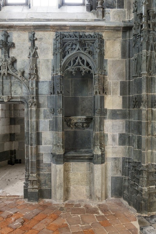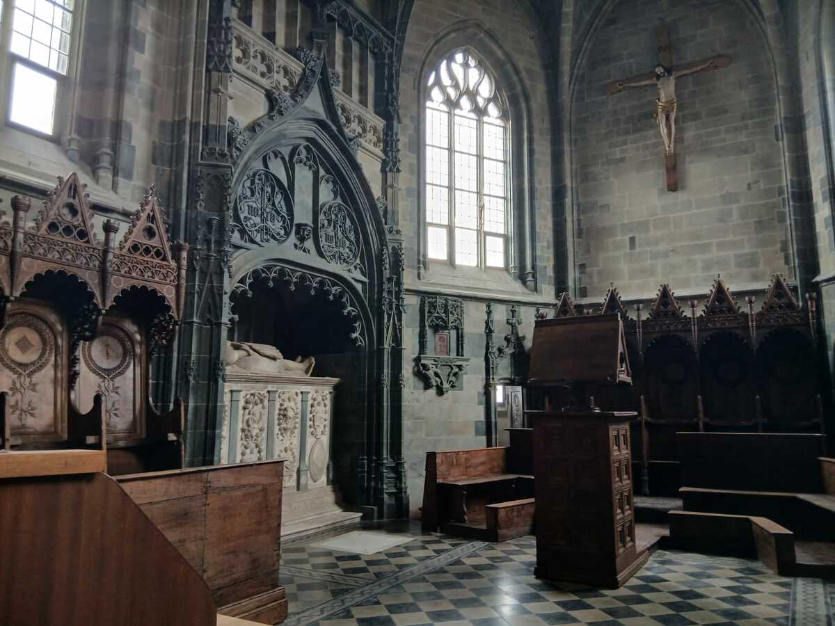 Sono la testimonianza delle trasformazioni del gusto alla corte di Ludovico II e di Margherita di Foix . Vi hanno operato maestranze di cultura fiamminga e di Borgogna e un artista borgognone, Antoine Moiturier, a cui pare si debbano il progetto a pianta pentagonale e le pareti rivestite in pietra grigia, in cui spiccano inserti in pietra verde. Nella nicchia di sinistra si trova il monumento funebre di Ludovico II, commissionato dalla moglie nel 1504 e realizzato intorno al 1508 in marmo bianco di Paesana da Benedetto Briosco, uno dei protagonisti dei cantieri del Duomo di Milano e della Certosa di Pavia.