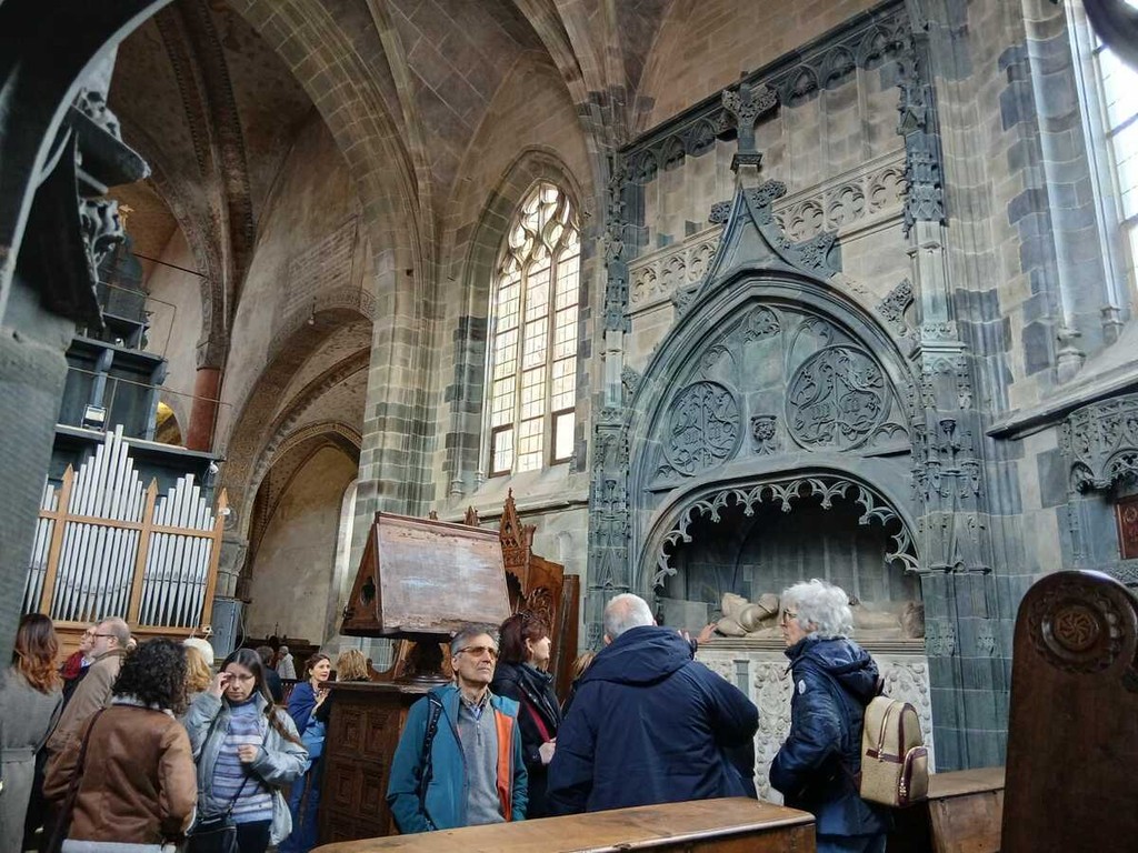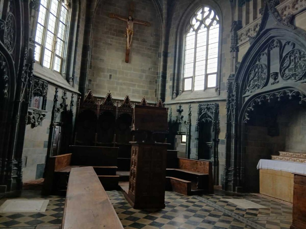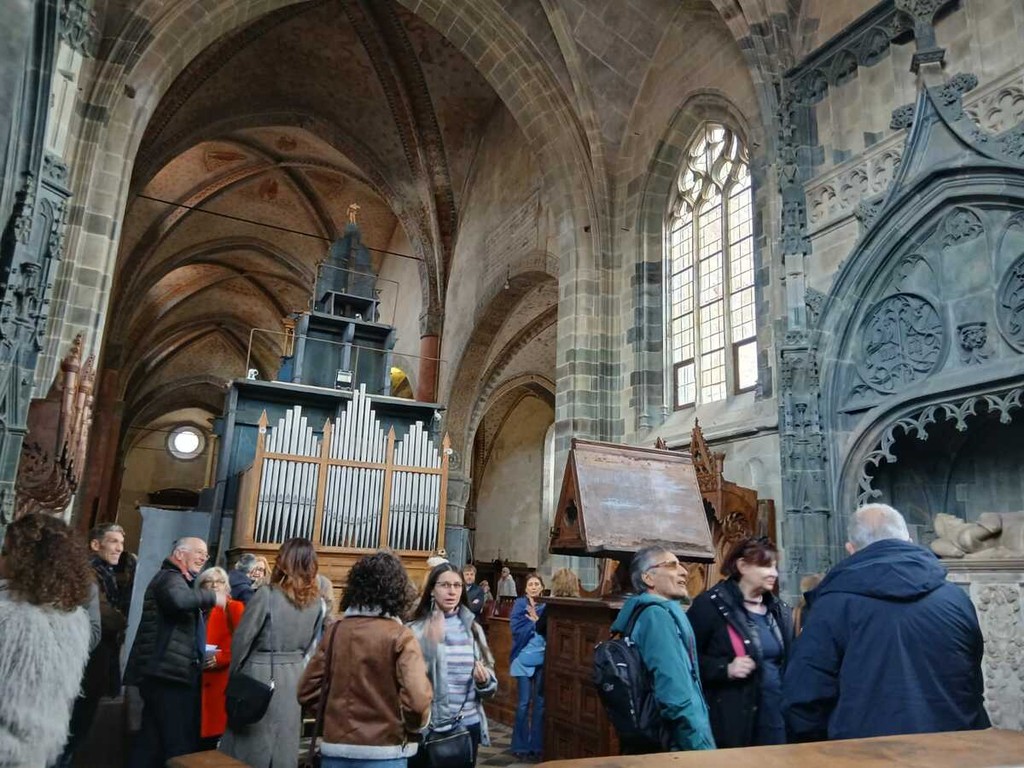 Un vero gioiello per il quale c'era molta attesa. Qui infatti è stato ricollocato il quattrocentesco coro in noce, scolpito e intarsiato (già restaurato dal Centro d'eccellenza di La Venaria Reale con il sostegno delle Fondazioni CR di Saluzzo e di Torino) e del Cristo crocifisso (restaurato invece grazie al progetto “Chiese devozionali” della Conferenza Episcopale Piemonte). Ha approfondito la natura del capolavoro ligneo, il professor Guido Gentile che fece da apripista agli studi su questo insieme di stalli corali provenienti dall’Abbazia di Sant’Antonio di Ranverso, che si ritiene siano arrivati in san Giovanni con i Serviti, ma che gli studi di Vacchetta anticipano al 1754.