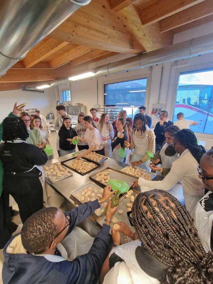 Tra i momenti più rappresentativi dell’esperienza, la visita organizzata in collaborazione con Confartigianato Cuneo al laboratorio della Pasticceria Brignone di Dronero, eccellenza artigiana della provincia. Accompagnati dai docenti Antonella Villosio, Rocco Vilmercati ed Elisabetta Bergia, gli studenti sono stati accolti dal titolare Umberto Brignone e dal presidente della zona di Dronero di Confartigianato, Alessandro Dao.