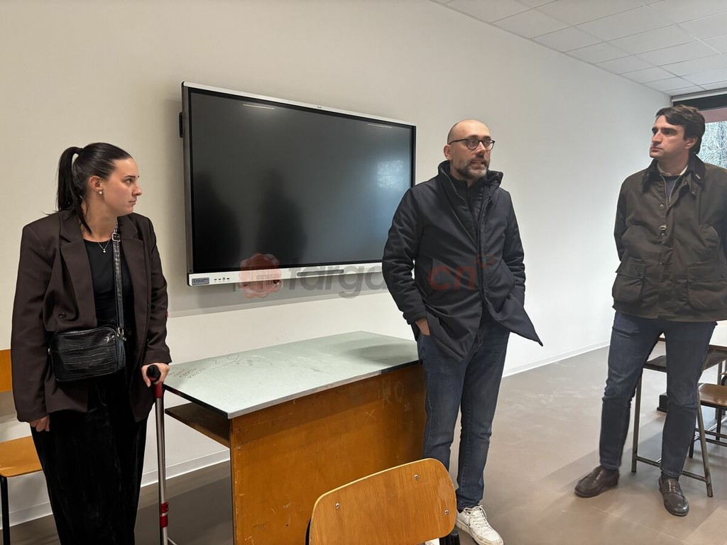 [L'assessore Francesca Bertazzoli, il sindaco Luca Robaldo e il consigliere provinciale Pietro Danna oggi in una visita all'edificio, aperta agli insegnanti]
