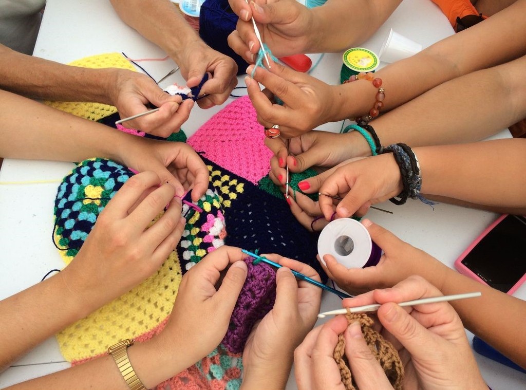 Questa tecnica, che immediatamente richiama alla mente il ricordo delle nostre nonne a sferruzzare davanti al camino o all’ombra nel giardino d’estate, riesce ad accomunare diverse generazioni e farle dialogare in un momento di scambio informazioni, esperienze e metodi, ma anche nella convivialità allegra e stemperata che si crea nel condividere una passione comune.