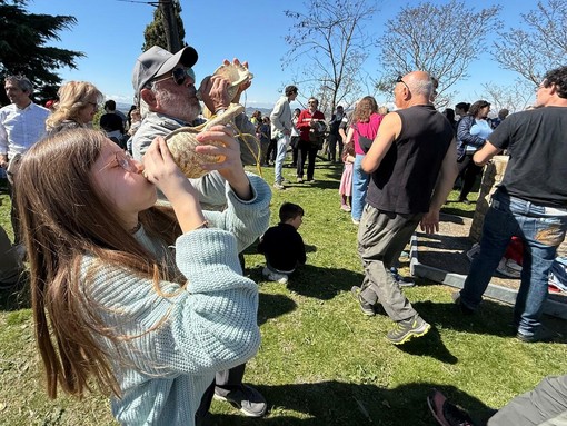 Anche quest’anno a mezzogiorno del sabato santo niente 'baudetta'. Dalle colline del Roero si sono diffuse le frequenze basse e cupe delle conchiglie marine, suonate da decine di persone (anche tanti giovani), per mantenere vivo un rito riscoperto alcuni anni fa, una tradizione che voleva le campane tacere e le conchiglie annunciare l’ora di tornare a casa dai campi per il pranzo.