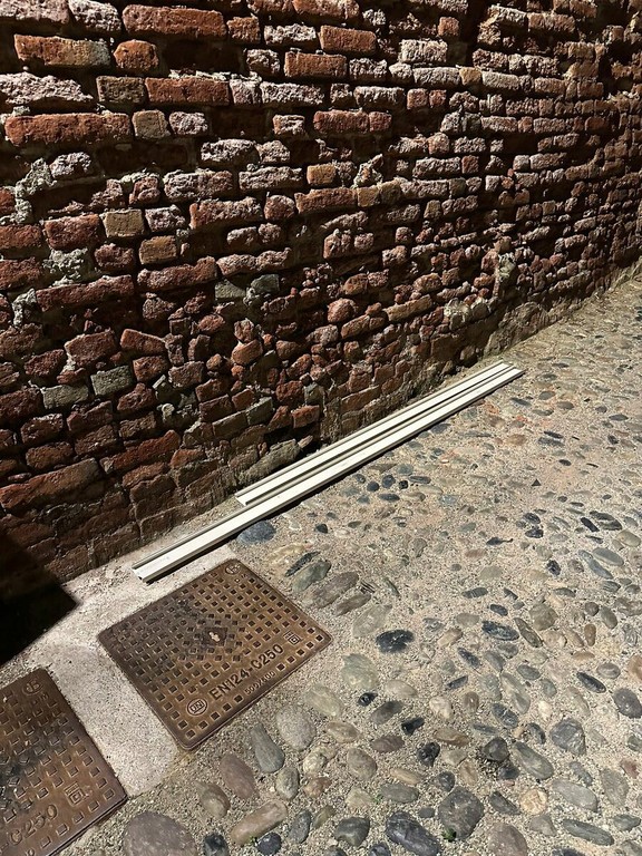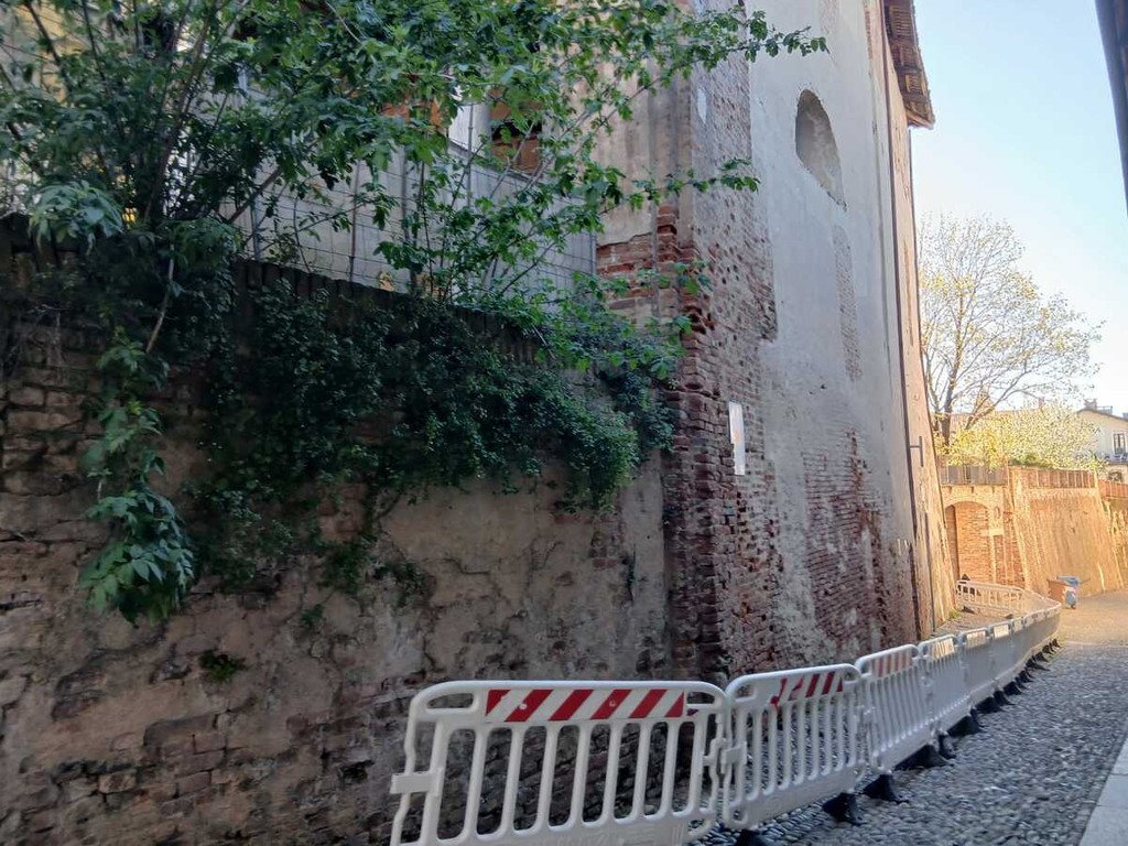 Poco distante in via Pusterla è stato divelto il palo di divieto d’accesso veicolare alla stradina più caratteristica di Saluzzo ed è stato lanciato nel giardino sottostante. Attualmente è riposizionato.