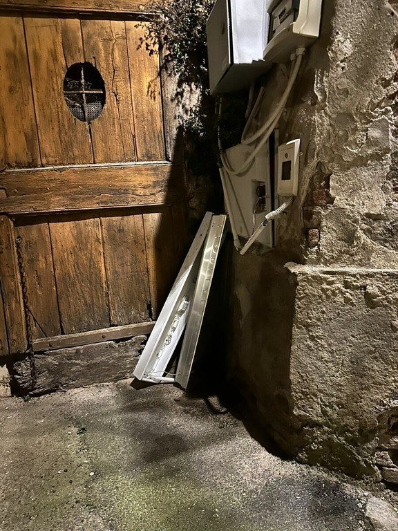 Viene riportato il fatto che dalle finestre dello stabile sono state fatti volare in strada materiale elettrico, scanaline di plastica e anche una sedia.Tra i ciottoli della via ci sono schegge di vetro a centinaia, caduti sia a causa di gesti vandalici che del vento dei giorni scorsi.