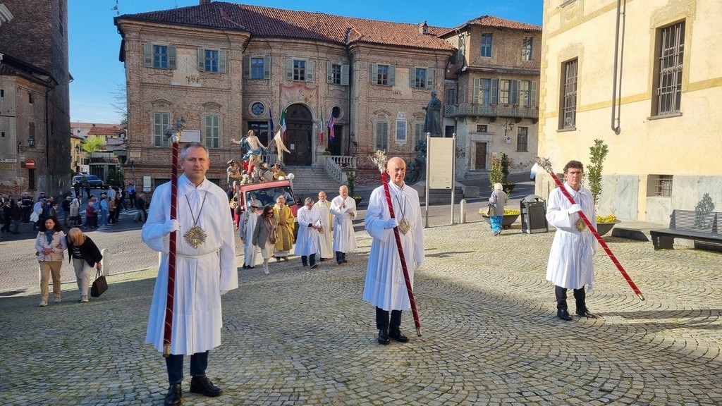 La processione, chiusa dal rettore Franco Cocuzza e dai vice rettori Andrea Maccagno e Silvio Malena, si è snodata a circolo tra piazza Caduti per la libertà, via Vittorio Emanuele II, via Pollenzo, piazza XX Settembre e corso Garibaldi.