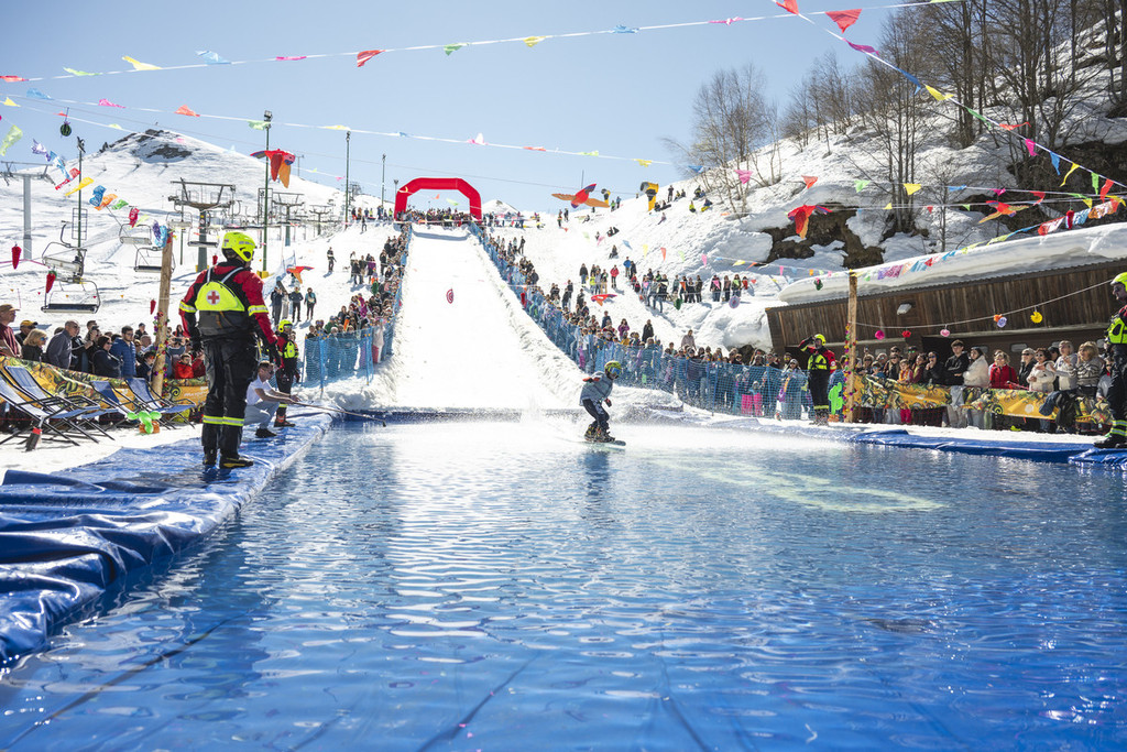 Come da tradizione, i partecipanti si sono lanciati lungo la discesa per attraversare l’ormai iconica piscina ai piedi della pista 2 della Conca. Fra tuffi spettacolari, cadute memorabili e attraversamenti impeccabili, lo spettacolo ha coinvolto concorrenti e pubblico, culminando in sorrisi, risate e applausi per tutti.