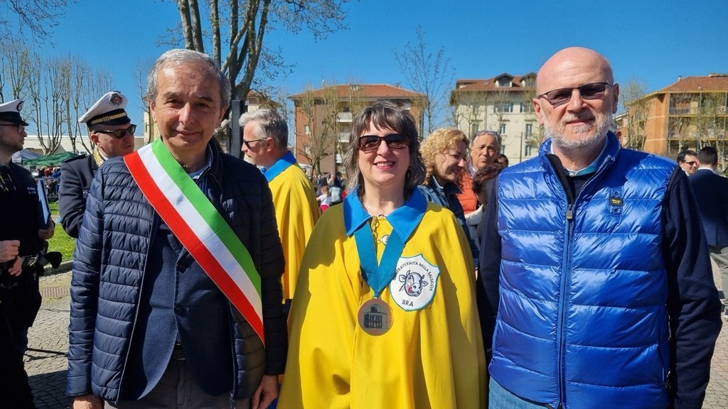 Infine la foto di rito con il sindaco Gianni Fogliato, le autorità municipali ed i rappresentanti di categoria per la Confraternita, che proprio il 6 aprile ha battezzato l’ingresso tra le sue fila di una nuova socia. Grandi emozioni per Silvia Gullino, giornalista e insegnante braidese, che ha vestito i paludamenti ufficiali, culminati con l’imposizione del medaglione da parte del Gran Maestro.