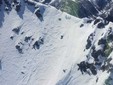 La foto con le frecce indica il punto in cui è stato sbarcato il tecnico del Soccorso Alpino (freccia in alto) e quello in cui si trovava l'infortunato (freccia in basso).