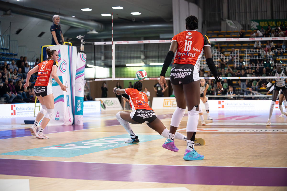 Ora sono le Gatte a partire meglio, 1-3 e 4-8. Le biancorosse hanno ingranato la marcia giusta e allungano 7-11. Le Tigri però non ci stanno e si portano a -1, 10-11, prima che Diop sblocchi il gioco e le Gatte tornino a macinare punti: 12-16 e 13-18. Le biancorosse salgono ora in cattedra e allungano 17-22. Le Tigri però sono ancora vive e tentano la rimonta 19-22. Le Gatte non mollano e la chiudono a muro: 20-25, le Gatte sono in finale dei Playoff di Challenge Cup!
