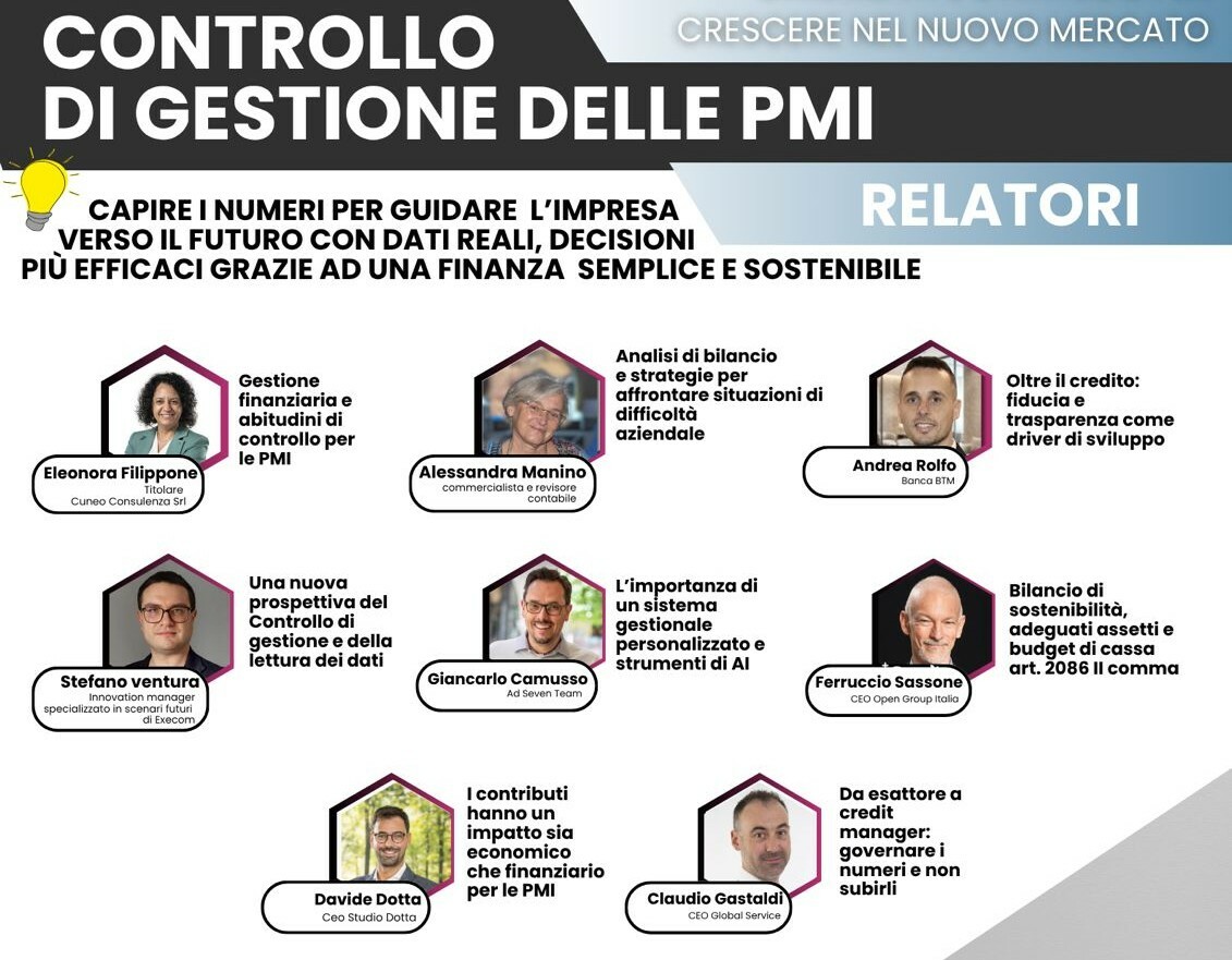 Il focus dell’evento è chiaro: capire i numeri per guidare l’impresa verso il futuro, con strumenti utili, approcci pratici e contributi autorevoli. Durante l’incontro si parlerà di gestione finanziaria, analisi di bilancio, lettura dei dati, sistemi personalizzati di controllo, intelligenza artificiale applicata alla gestione, sostenibilità, assetti organizzativi, budget di cassa, contributi e credit management.