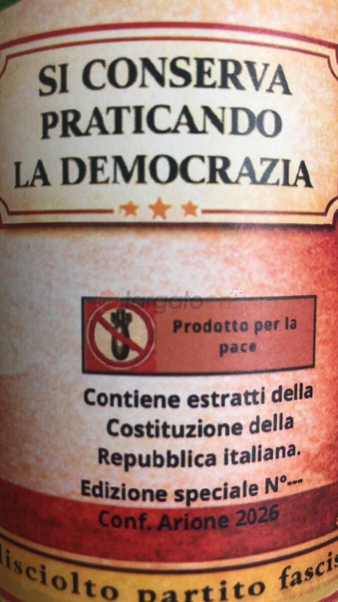 La “conserva antifascista” nasce da un'idea di Umberto Arione, gestore del circolo Amici di Aradolo, che l'ha appositamente realizzata per trasmettere un valore fondante la Repubblica Italiana che va tutelato e “conservato”.