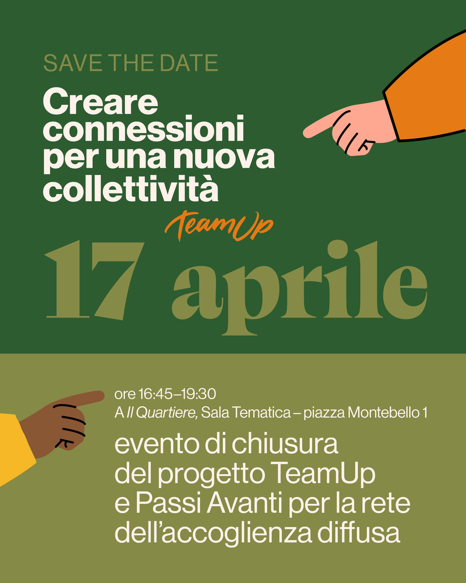 «Team Up – Creare connessioni per una nuova collettività» è un progetto avviato nel gennaio 2024 nei territori del Saluzzese, Saviglianese e Fossanese con l’obiettivo di strutturare servizi a favore delle persone con background migratorio. L’iniziativa è sostenuta dalla Fondazione Compagnia di San Paolo e dalla Fondazione Cassa di Risparmio di Cuneo, nell’ambito del bando «Territori inclusivi».