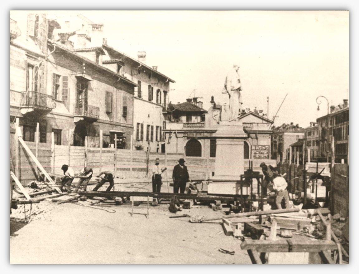 Negli stessi anni, informa Sira Bovo, fu spostata anche la statua di Giambattista Bodoni, prima accanto al Duomo, poi in piazza Dante, dove è attualmente, di fronte all’ospedale.