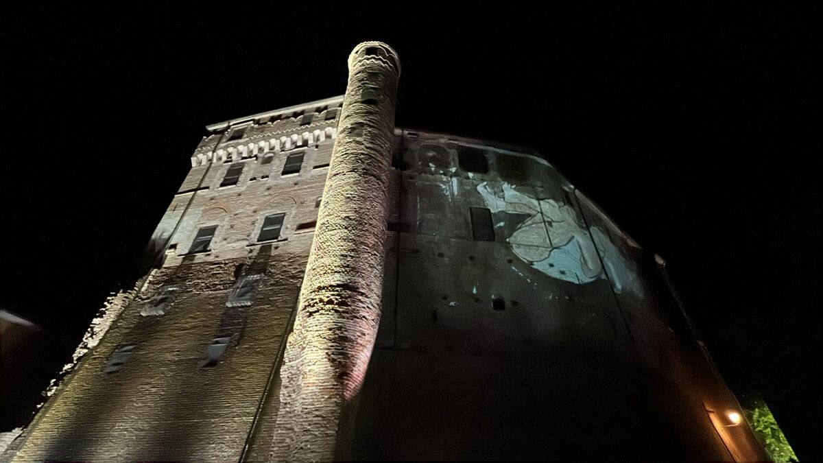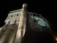 [La video-animazione di Valerio Berruti proiettata sulla facciata del castello di Roddi]