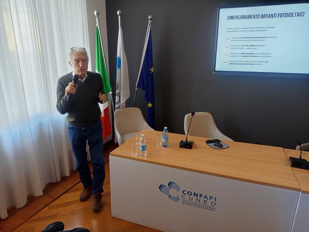 Ha aperto i lavori Massimo Marengo, referente nazionale Energia Confapi oltre che presidente Confapi Cuneo, prima di lasciare la parola agli altri relatori: Matteo Paseri, responsabile commerciale Eviso, Luca Perrone di STP Progetti, Daniele Avico, responsabile CER Eneralpi, Federica Monte di KIA Vento, Gioele Postiglioni di Pulipanel, Paolo Giacchero di Albasolar e Mattia Devale di STP Progetti.