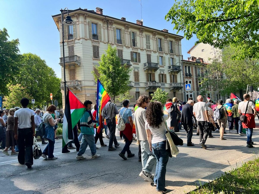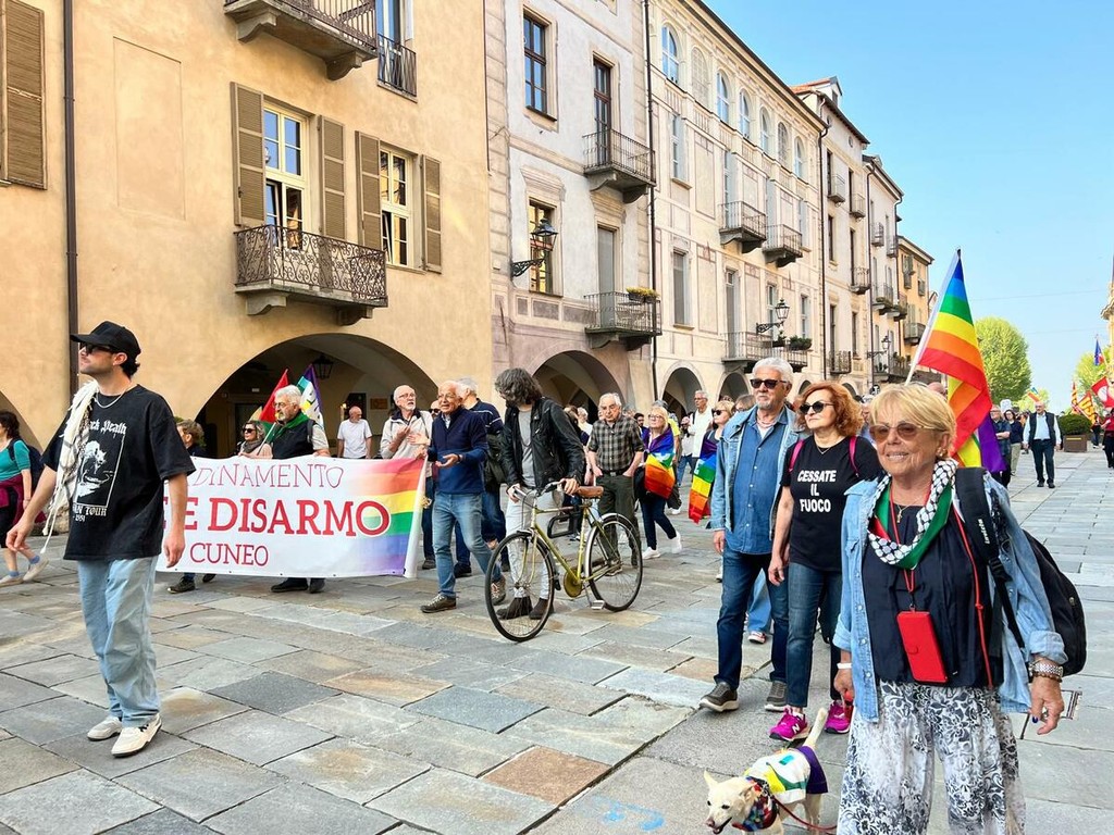 Ha preso il via alle ore 16 di oggi, sabato 18 aprile, dal Parco della Resistenza la manifestazione promossa a Cuneo per denunciare la spirale di conflitti in Asia occidentale e nei Paesi del Golfo. Il corteo ha attraversato  viale Angeli, corso Giovanni XXIII, via Roma e corso Nizza con destinazione piazza Europa, ribattezzata simbolicamente dagli organizzatori “piazza Palestina”.