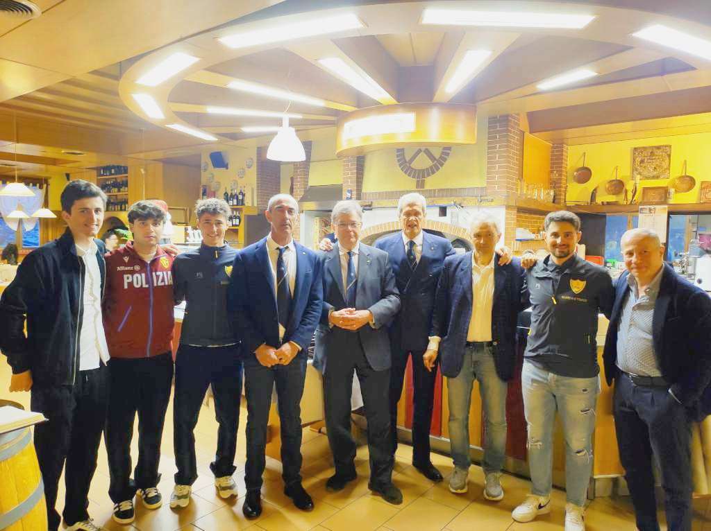 Dirigenti del Panathlon Club Cuneo insieme a Borgognone e Brizio