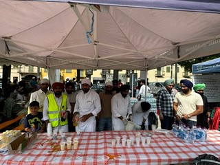 La giornata si è aperta con la processione dal tempio in via Pascheretto per raggiungere piazza Carignano dove sono stati allestiti dei gazebo per l’accoglienza e distribuzione di cibo per tutti i partecipanti.